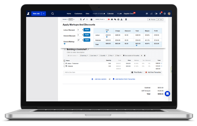 Markup is basically adding a percentage to your costs to determine the selling price. For example, if a job costs you $100 in materials and labour, and you apply a 50% markup, you'd sell it for $150 ($100 + 50%).